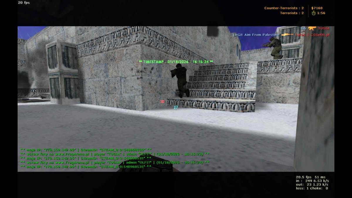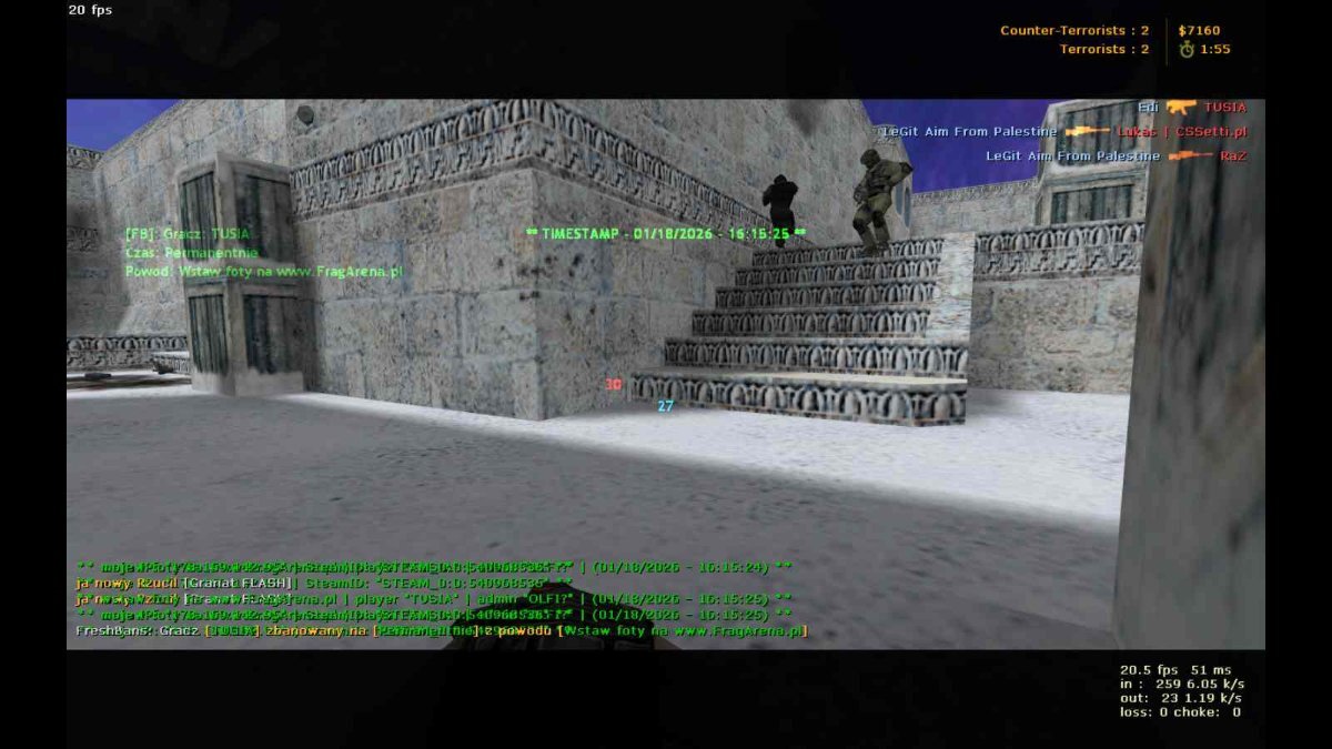 Tusia Opublikowano 18 Stycznia Udostępnij Opublikowano 18 Stycznia Bo chcę latać, 18 Stycznia Zastosuj się do wzoru: 1. Nick podczas gry: 2. IP/SteamID: 3. Data i godzina otrzymania bana: 4. Nick admina banującego: 5. Typ serwera: 6. Nazwa mapy: 7. Link do screenshotów/POV zapakowany w *.rar *.zip ma się znaleźć 5 screenów w formacie .bmp lub POV, czyli demo o nazwie "DD2_[LOSOWANIE_sVIPa][Steam_Nocny_VIP][eVIP_sVIP][Skiny]@FragArena_pl.dem". 1 Odnośnik do komentarza Udostępnij na innych stronach Więcej opcji udostępniania...