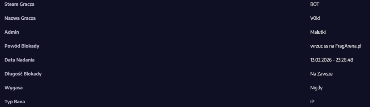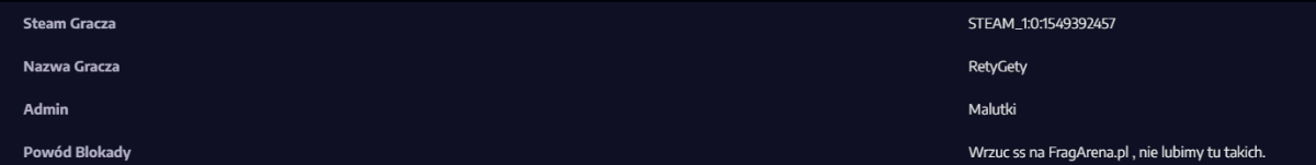 RetyGety Opublikowano Niedziela o 08:34 Udostępnij Opublikowano Niedziela o 08:34 Nick podczas gry: RetyGety IP/SteamID: 10.197.193.137:27015 Typ serwera: Serwer [COD MOD] 1001 LEVEL | DARMOWY VIP | UNIKAT *FRAGARENA.PL* 193.33.176.27:27120 Nick admina od, którego dostałeś/aś bana: Malutki Data, godzina otrzymania bana: 15.02.2026 - 08:59:18 Wyjaśnienie: Wrzuc ss na FragArena.pl , nie lubimy tu takich. Wydruk z konsoli: [FB]-------------------------------------[FB] ||| Zostales zbanowany ||| Nick: RetyGety ||| IP: 46.112.0.21 ||| SteamID: STEAM_1:0:1549392457 ||| Przez admina: Malutki ||| Powod: Wrzuc ss na FragArena.pl , nie lubimy tu takich. ||| Czas nadania bana: 15.02.2026 - 08:59:18 ||| Dlugosc bana: Permanentnie ||| Serwer: [COD MOD] 1001 LEVEL | DARMOWY VIP | UNIKAT *FRAGARENA.PL* (de_rats_1337) ||| Wygasnie: Nigdy ||| Zapraszamy na FragArena.pl do wyjasnienia sytuacji [FB]-------------------------------------[FB] dredek opuscil gre Couldn't open file overviews/fy_pool_day.txt. Using default values for overiew mode. Couldn't open file overviews/fy_pool_day.txt. Using default values for overiew mode. Kicked by Console: "Jestes zbanowany. Sprawdz swoja konsole." Kicked :"Jestes zbanowany. Spraw 4 1 Odnośnik do komentarza Udostępnij na innych stronach Więcej opcji udostępniania...